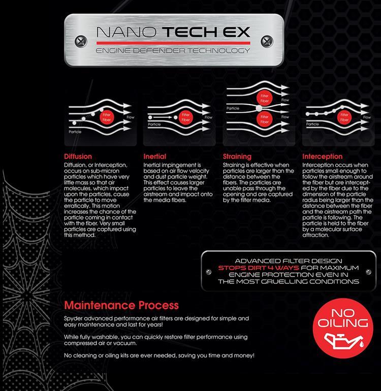• Spyder Drag/Asphalt racing filters features soft, two-stage sealing beads to ensure the filter seals tight against the base and lid