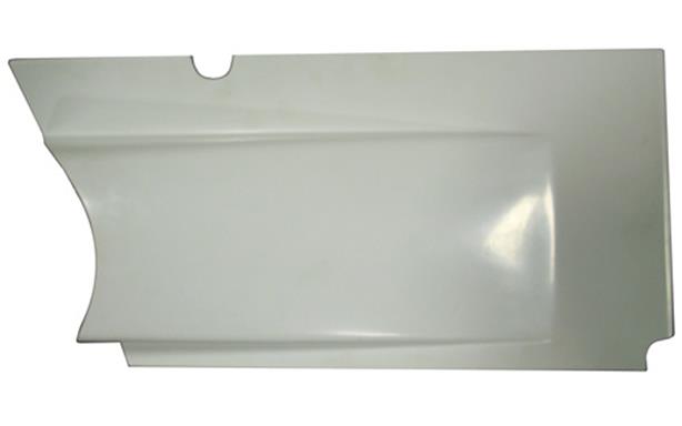 • Right Side Upper Kick Panel • Fiberglass • Split horizontally above muffler • Convex "Bullet" design goes over radius rod • Not drilled for dzus buttons