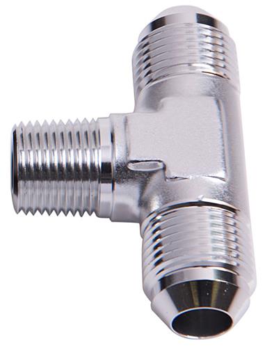 • Male branch tee union • AN to AN to NPT pipe adapter • Connects same size AN ends • Designed for leak-free performance • Chrome look anodized aluminum • Quality design & materials