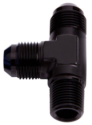 • Male run tee union • AN to NPT pipe to AN adapter • Connects both AN ends same size • Designed for leak-free performance • Black anodized aluminum • Quality design & materials